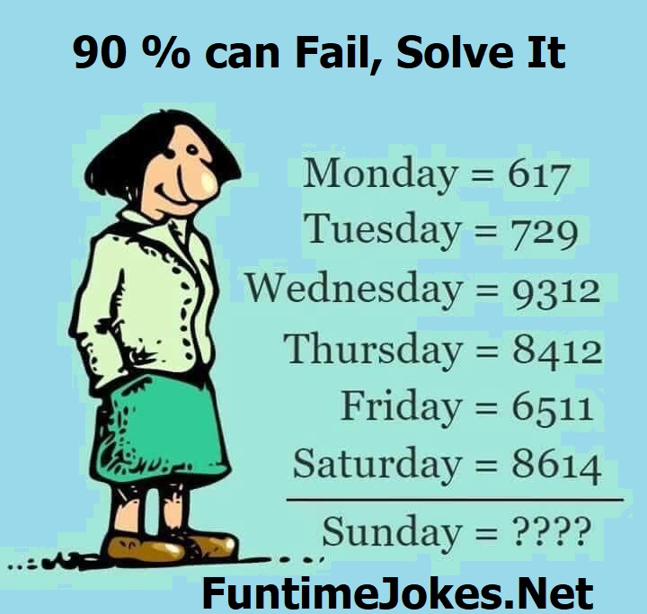 6713 Sunday would be β 6 as the First NUMBER ( as Sunday is a 6 character long word) Then Second Number is β 7 ( as Sunday is the 7th day ) So the Second Number is 7 And the 3rd and 4th Digits would be β- 13. ( here you take the 6 characters of Sunday plus + 7th day , the last digit or last 2 digits is the sum of the first 2 digits/number in this case 6+7 ) Now arrange 6 and 7 and 13 sequentially in order So you have 6 7 13 Sunday is 6713 Check out our Jokes section for awesome viral and interesting jokes.