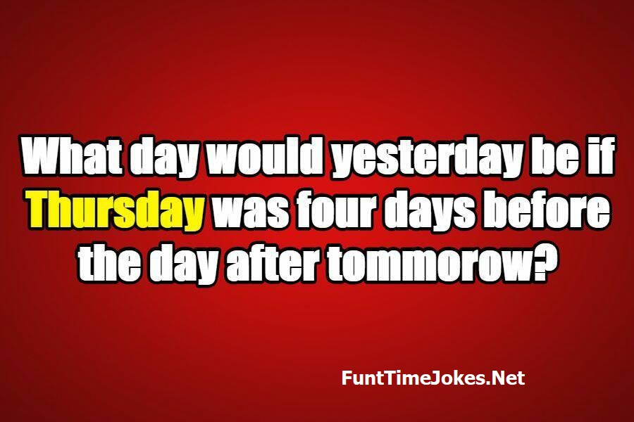 π Pop Balloon Riddles (Tap to reveal answers)What day would yesterday be if Thursday was four days before the day after tomorrow? is one of the best riddle of the day.We have best collections of riddles, You can see our best collection of Tricky Riddles with Answer