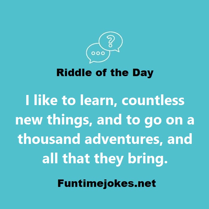 π Take the 15-Riddle Challenge (Win at 80%+)I like to learn, countless new things, and to go on a thousand adventures, and all that they bring.