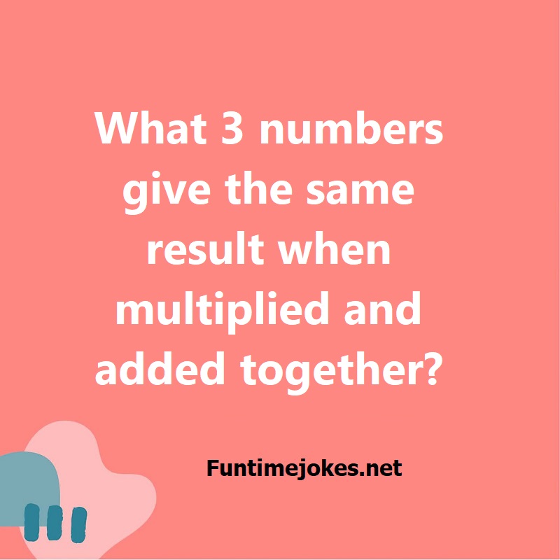 π Pop Balloon Riddles (Tap to reveal answers)What 3 numbers give the same result when multiplied and added together? is one of the best riddle of the day.We have best collections of riddles, You can see our best collection of Tricky Riddles with Answer