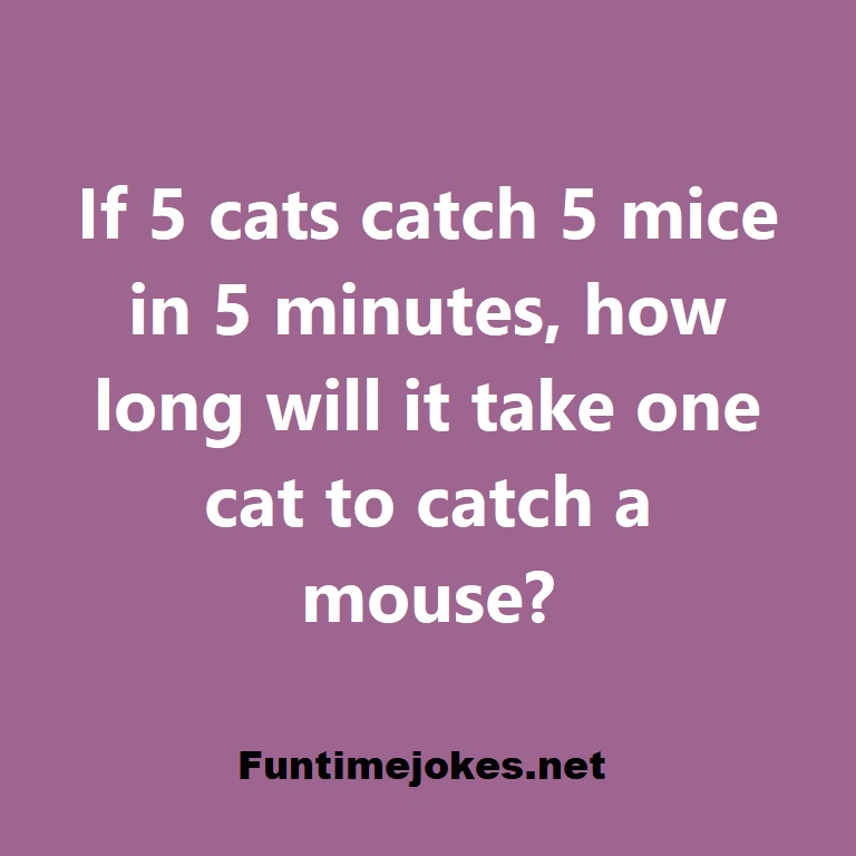 π Take the 15-Riddle Challenge (Win at 80%+)If 5 cats catch 5 mice in 5 minutes, how long will it take one cat to catch a mouse?