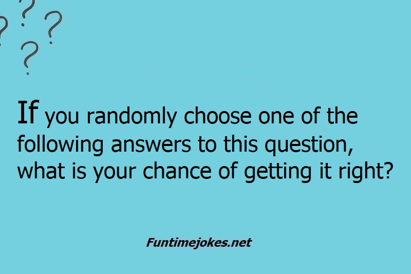 π Take the 15-Riddle Challenge (Win at 80%+)If you randomly choose one of the following answers to this question, what is your chance of getting it right?