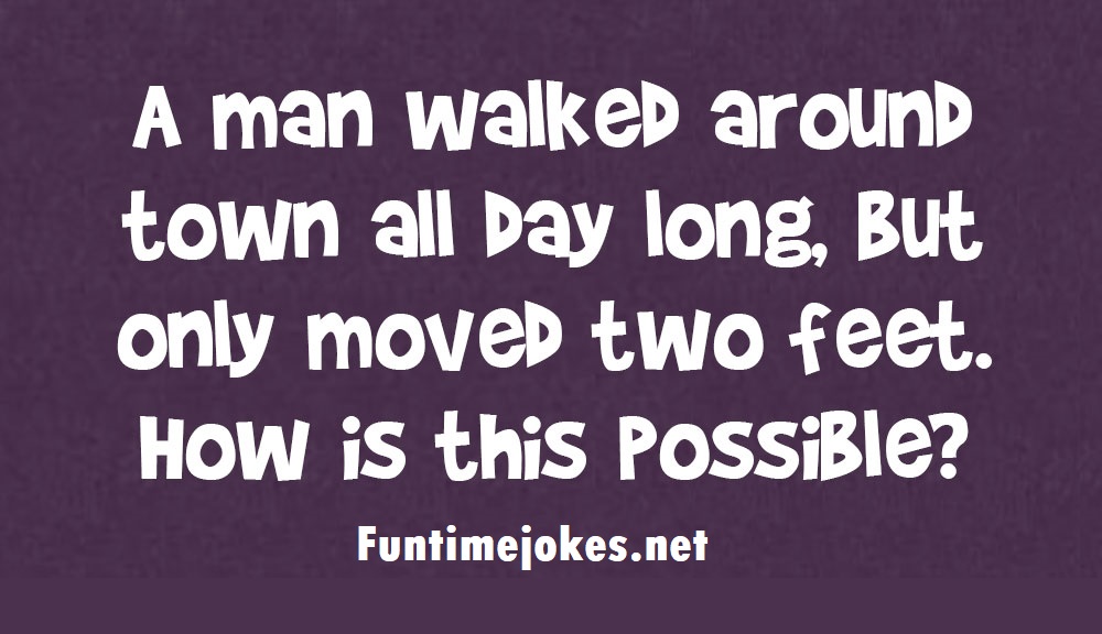π Take the 15-Riddle Challenge (Win at 80%+)A Man Walked Around Town all Day Long, but Only Moved Two Feet. How is this Possible?
