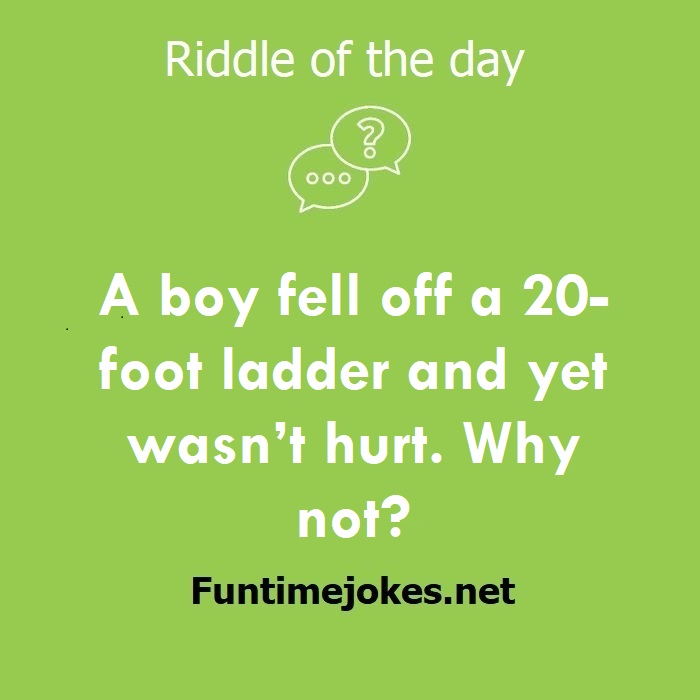 🎈 Pop Balloon Riddles (Tap to reveal answers)A boy fell off a 20-foot ladder and yet wasn’t hurt. Why not? is one of the best riddle of the day.We have best collections of riddles, You can see our best collection of Tricky Riddles with Answer