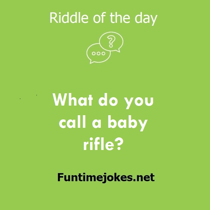 π Pop Balloon Riddles (Tap to reveal answers)What do you call a baby rifle? is one of the best riddle of the day.We have best collections of riddles, You can see our best collection of Tricky Riddles with Answer