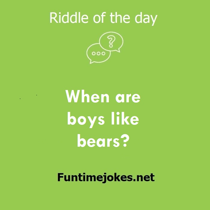 π Pop Balloon Riddles (Tap to reveal answers)When are boys like bears? is one of the best riddle of the day.We have best collections of riddles, You can see our best collection of Tricky Riddles with Answer