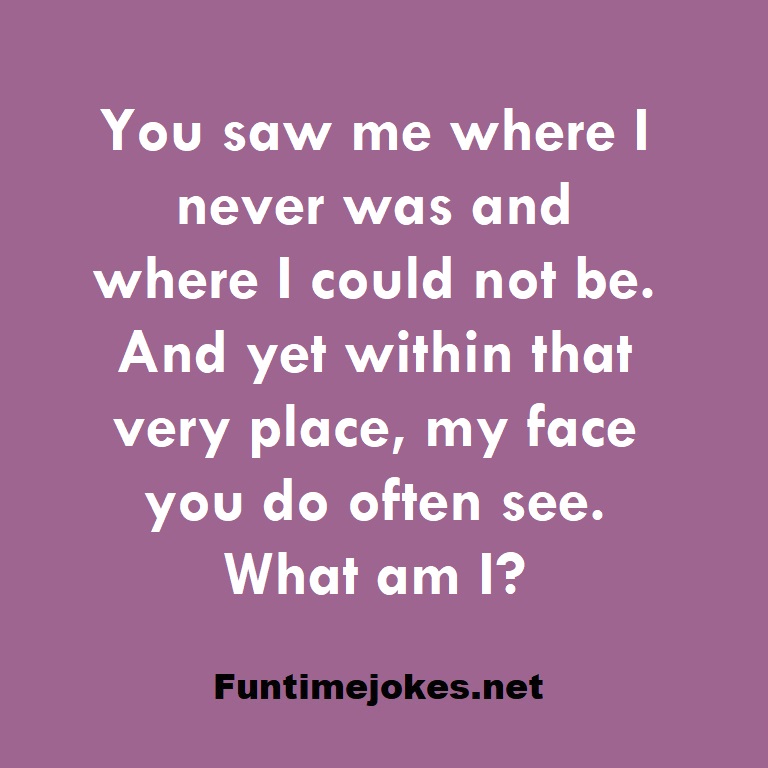 π Pop Balloon Riddles (Tap to reveal answers)You saw me where I never was and where I could not be. And yet within that very place, my face you do often see. What am I? is one of the best riddle of the day.We have best collections of riddles, You can see our best collection of Tricky Riddles with Answer