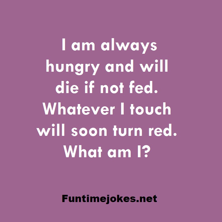 π Take the 15-Riddle Challenge (Win at 80%+)I am always hungry and will die if not fed. Whatever I touch will soon turn red. What am I?