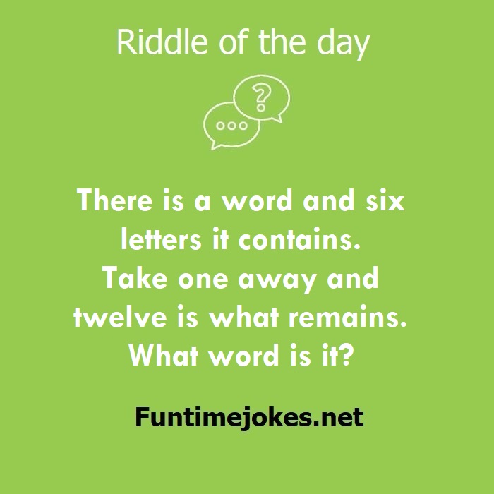 π Pop Balloon Riddles (Tap to reveal answers)There is a word and six letters it contains. Take one away and twelve is what remains. What word is it? is one of the best riddle of the day.We have best collections of riddles, You can see our best collection of Tricky Riddles with Answer
