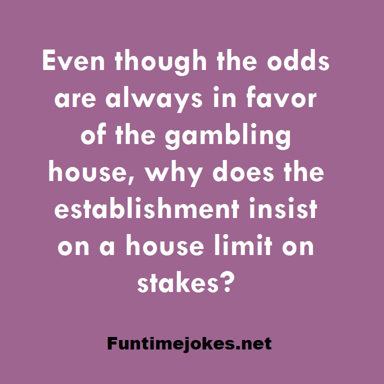 We encourage you to subscribe us to receive our Daily/Weekly riddles newsletter. Even though the odds are always in favor of the gambling house, why does the establishment insist on a house limit on stakes? is one of the best riddle of the day.We have best collections of riddles, You can see our best collection of Tricky Riddles with Answer