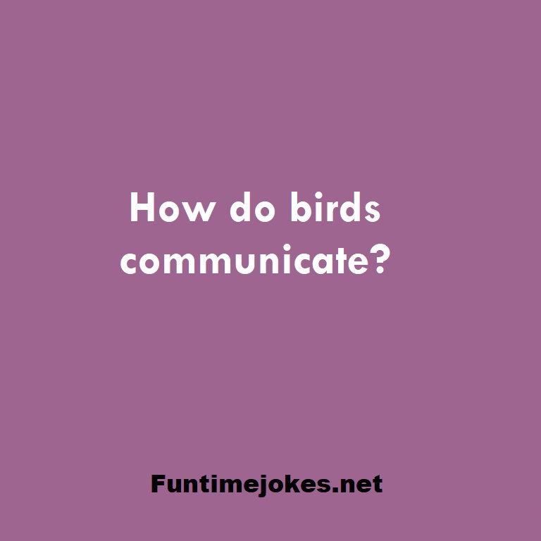 π Pop Balloon Riddles (Tap to reveal answers)How do birds communicate? is one of the best riddle of the day.We have best collections of riddles, You can see our best collection of Tricky Riddles with Answer