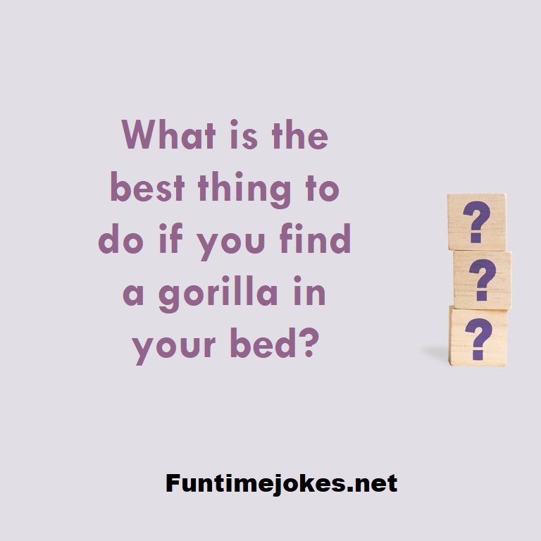 π Take the 15-Riddle Challenge (Win at 80%+)What is the best thing to do if you find a gorilla in your bed?