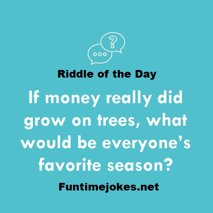 🎈 Pop Balloon Riddles (Tap to reveal answers)If money really did grow on trees, what would be everyone’s favorite season? is one of the best riddle of the day.We have best collections of riddles, You can see our best collection of Tricky Riddles with Answer