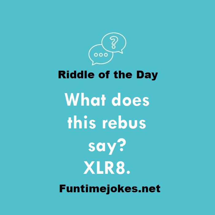 π Pop Balloon Riddles (Tap to reveal answers)What does this rebus say? XLR8. is one of the best riddle of the day.We have best collections of riddles, You can see our best collection of Tricky Riddles with Answer