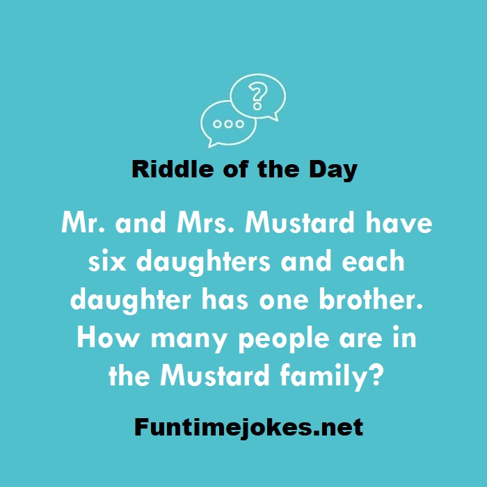 π Take the 15-Riddle Challenge (Win at 80%+)Mr. and Mrs. Mustard have six daughters and each daughter has one brother. How many people are in the Mustard family?