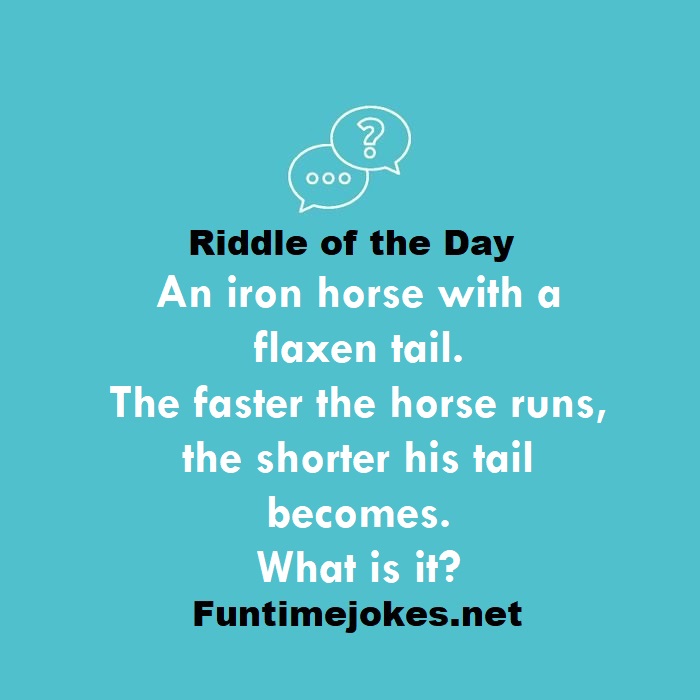 π Pop Balloon Riddles (Tap to reveal answers)An iron horse with a flaxen tail. The faster the horse runs, the shorter his tail becomes. What is it? is one of the best riddle of the day.We have best collections of riddles, You can see our best collection of Tricky Riddles with Answer