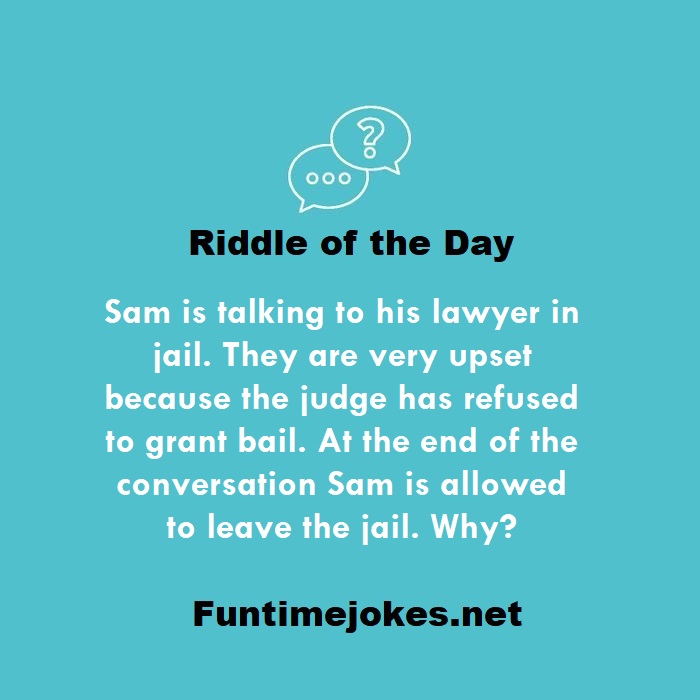 π Take the 15-Riddle Challenge (Win at 80%+)Sam is talking to his lawyer in jail. They are very upset because the judge has refused to grant bail. At the end of the conversation Sam is allowed to leave the jail. Why?