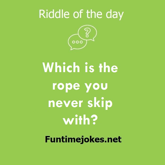 π Pop Balloon Riddles (Tap to reveal answers)Which is the rope you never skip with? is one of the best riddle of the day.We have best collections of riddles, You can see our best collection of Tricky Riddles with Answer