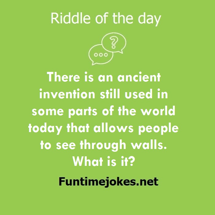 π Pop Balloon Riddles (Tap to reveal answers)There is an ancient invention still used in some parts of the world today that allows people to see through walls. What is it? is one of the best riddle of the day.We have best collections of riddles, You can see our best collection of Tricky Riddles with Answer