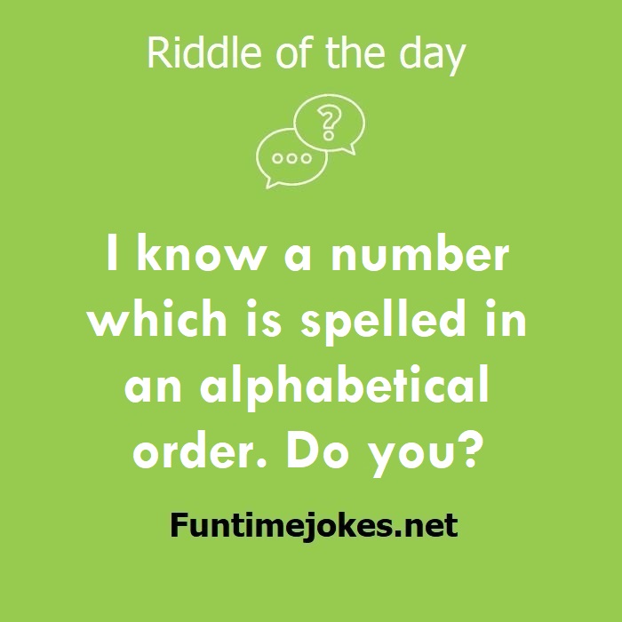 π Pop Balloon Riddles (Tap to reveal answers)I know a number which is spelled in an alphabetical order. Do you? is one of the best riddle of the day.We have best collections of riddles, You can see our best collection of Tricky Riddles with Answer