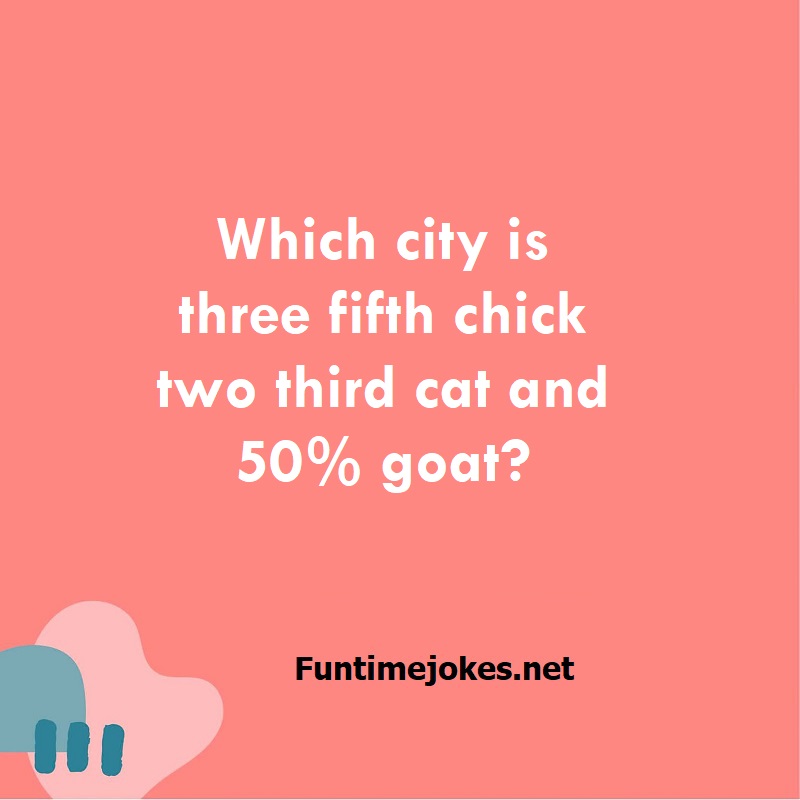 π Pop Balloon Riddles (Tap to reveal answers)Which city is three fifth chick two third cat and 50% goat? is one of the best riddle of the day.We have best collections of riddles, You can see our best collection of Tricky Riddles with Answer