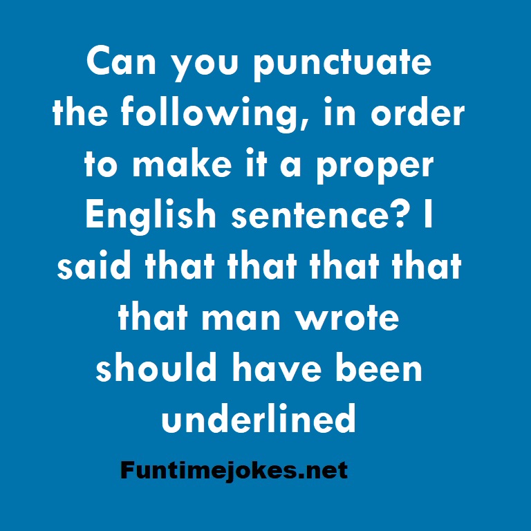 π Take the 15-Riddle Challenge (Win at 80%+)Can you punctuate the following, in order to make it a proper English sentence? I said that that that that that man wrote should have been underlined