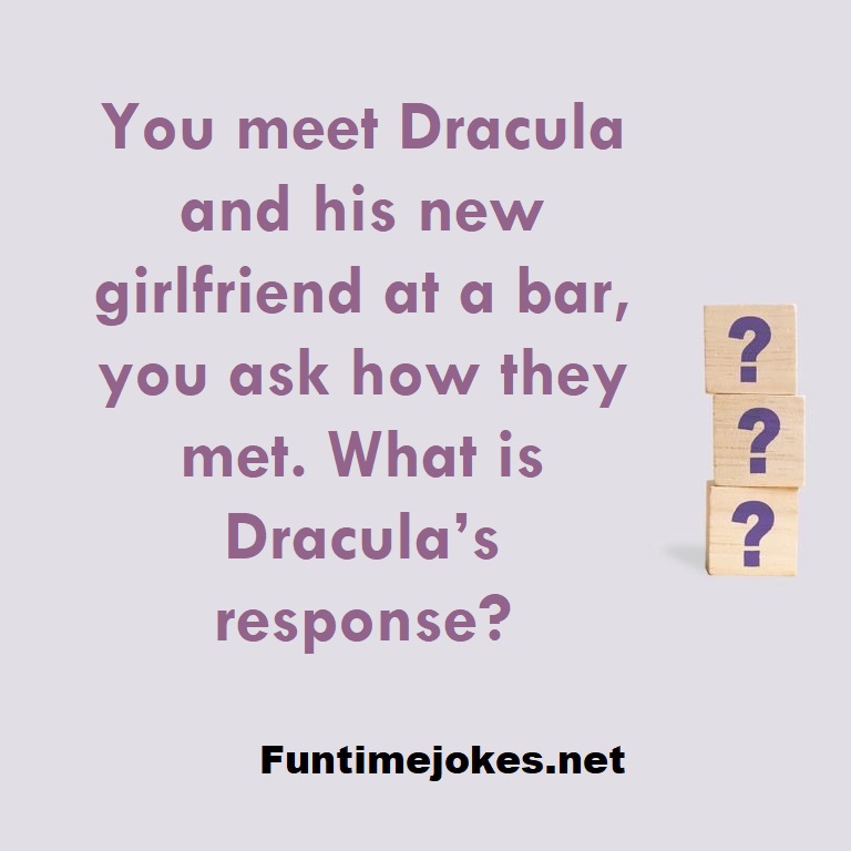🏆 Take the 15-Riddle Challenge (Win at 80%+)You meet Dracula and his new girlfriend at a bar, you ask how they met. What is Dracula’s response?