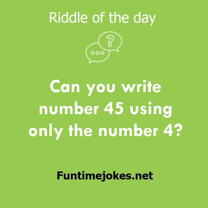 π Pop Balloon Riddles (Tap to reveal answers)Can you write number 45 using only the number 4? is one of the best riddle of the day.We have best collections of riddles, You can see our best collection of Tricky Riddles with Answer