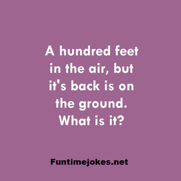 π Pop Balloon Riddles (Tap to reveal answers)A hundred feet in the air, but it's back is on the ground. What is it? is one of the best riddle of the day.We have best collections of riddles, You can see our best collection of Tricky Riddles with Answer