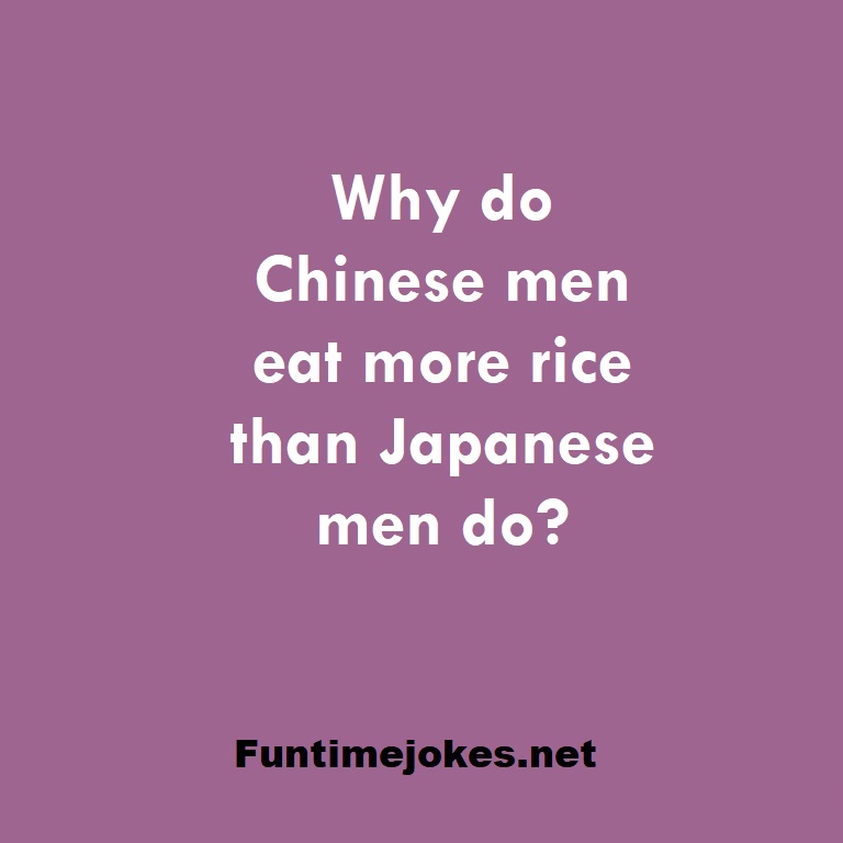 π Pop Balloon Riddles (Tap to reveal answers)Why do Chinese men eat more rice than Japanese men do? is one of the best riddle of the day.We have best collections of riddles, You can see our best collection of Tricky Riddles with Answer