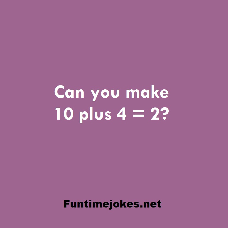 π Pop Balloon Riddles (Tap to reveal answers)Can you make 10 plus 4 = 2? is one of the best riddle of the day.We have best collections of riddles, You can see our best collection of Tricky Riddles with Answer