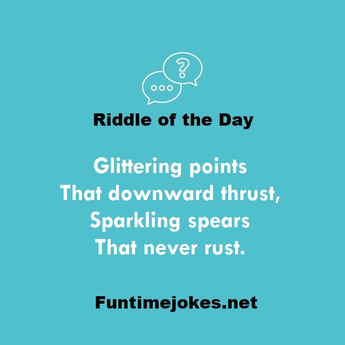 π Pop Balloon Riddles (Tap to reveal answers)Glittering points That downward thrust, Sparkling spears That never rust. is one of the best riddle of the day.We have best collections of riddles, You can see our best collection of Tricky Riddles with Answer