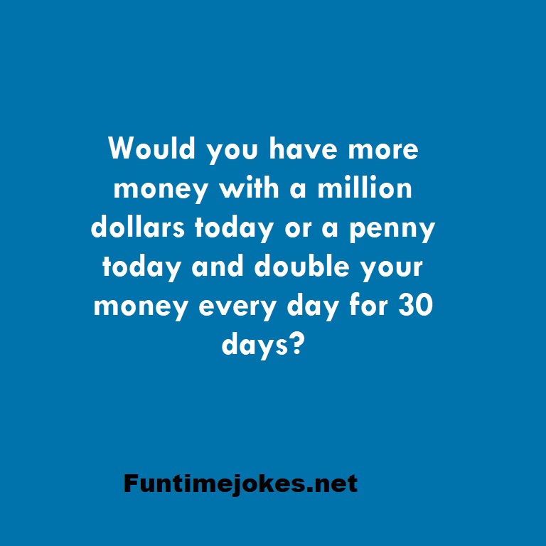 π Pop Balloon Riddles (Tap to reveal answers)Would you have more money with a million dollars today or a penny today and double your money every day for 30 days? is one of the best riddle of the day.We have best collections of riddles, You can see our best collection of Tricky Riddles with Answer