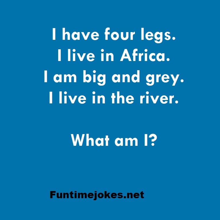 π Take the 15-Riddle Challenge (Win at 80%+)I have four legs. I live in Africa. I am big and grey. I live in the river. What am I?