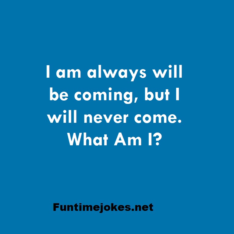 π Pop Balloon Riddles (Tap to reveal answers)I am always will be coming, but I will never come. What Am I? is one of the best riddle of the day.We have best collections of riddles, You can see our best collection of Tricky Riddles with Answer