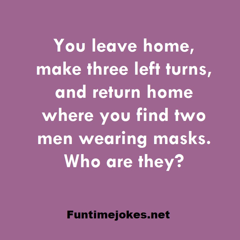 π Take the 15-Riddle Challenge (Win at 80%+)You leave home, make three left turns, and return home where you find two men wearing masks. Who are they?