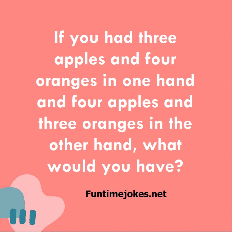 π Take the 15-Riddle Challenge (Win at 80%+)If you had three apples and four oranges in one hand and four apples and three oranges in the other hand, what would you have?