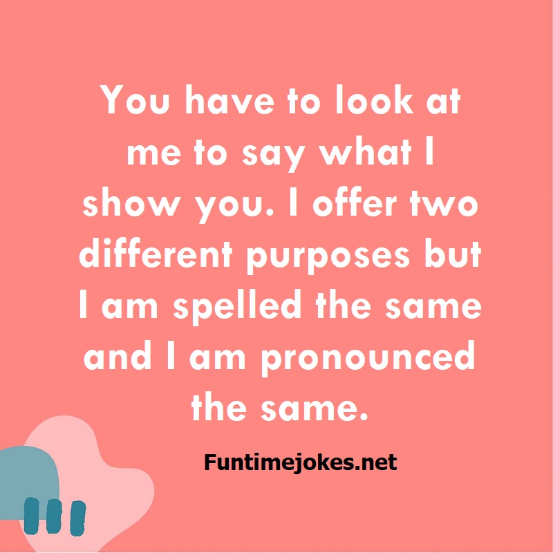 π Take the 15-Riddle Challenge (Win at 80%+)You have to look at me to say what I show you. I offer two different purposes but I am spelled the same and I am pronounced the same.