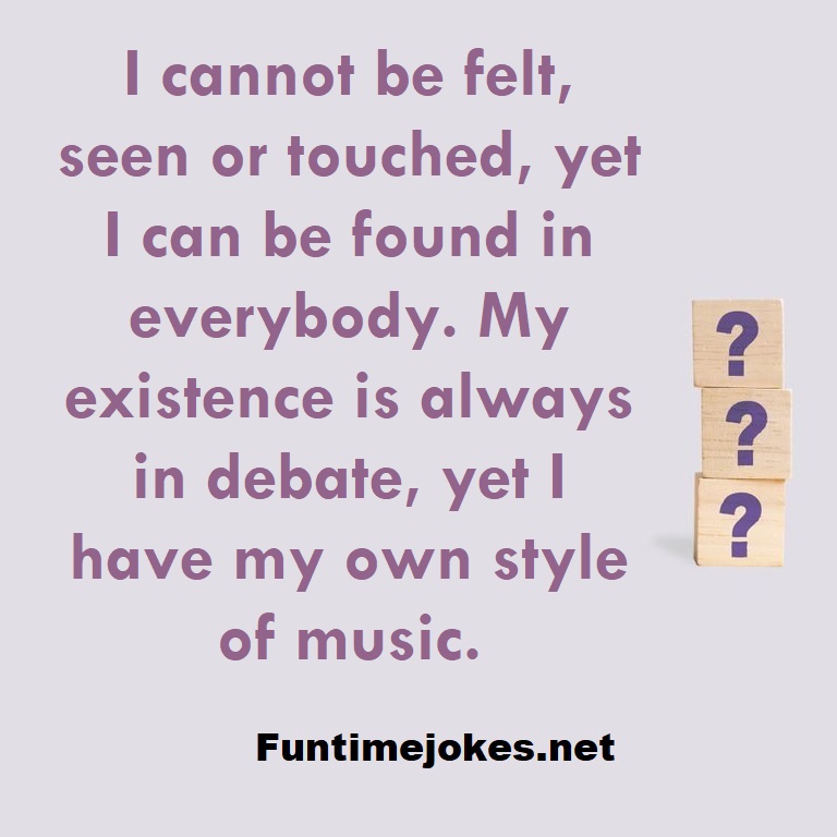 π Take the 15-Riddle Challenge (Win at 80%+)I cannot be felt, seen or touched, yet I can be found in everybody. My existence is always in debate, yet I have my own style of music.