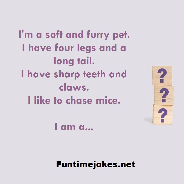 π Take the 15-Riddle Challenge (Win at 80%+)I'm a soft and furry pet. I have four legs and a long tail. I have sharp teeth and claws. I like to chase mice. I am a...