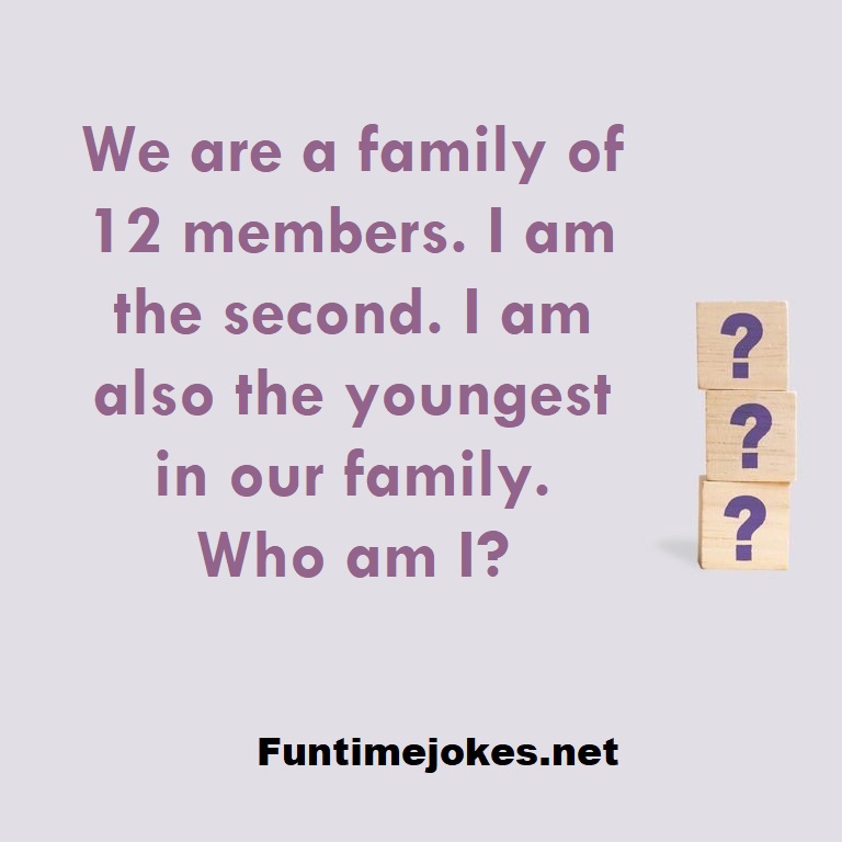 π Take the 15-Riddle Challenge (Win at 80%+)We are a family of 12 members. I am the second. I am also the youngest in our family. Who am I?