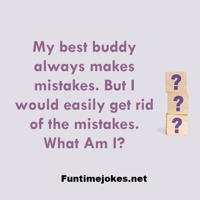 π Pop Balloon Riddles (Tap to reveal answers)My best buddy always makes mistakes. But I would easily get rid of the mistakes. What Am I? is one of the best riddle of the day.We have best collections of riddles, You can see our best collection of Tricky Riddles with Answer