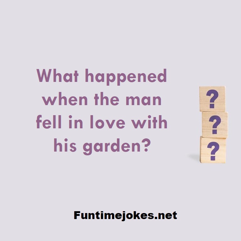 π Pop Balloon Riddles (Tap to reveal answers)What happened when the man fell in love with his garden? is one of the best riddle of the day.We have best collections of riddles, You can see our best collection of Tricky Riddles with Answer