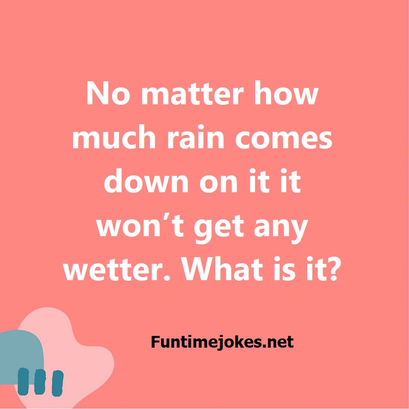 🎈 Pop Balloon Riddles (Tap to reveal answers)No matter how much rain comes down on it it won’t get any wetter. What is it? is one of the best riddle of the day.We have best collections of riddles, You can see our best collection of Tricky Riddles with Answer
