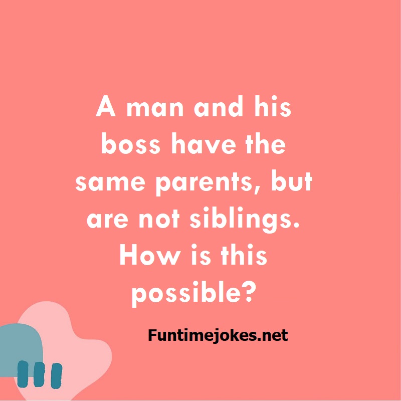 π Pop Balloon Riddles (Tap to reveal answers)A man and his boss have the same parents, but are not siblings. How is this possible? is one of the best riddle of the day.We have best collections of riddles, You can see our best collection of Tricky Riddles with Answer