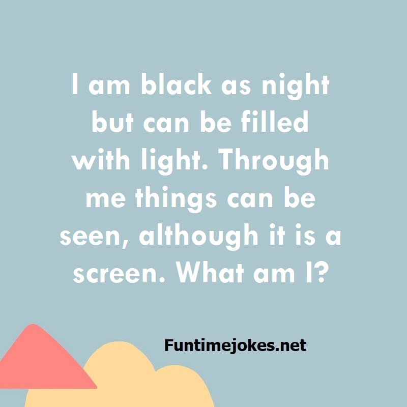 π Take the 15-Riddle Challenge (Win at 80%+)I am black as night but can be filled with light. Through me things can be seen, although it is a screen. What am I?