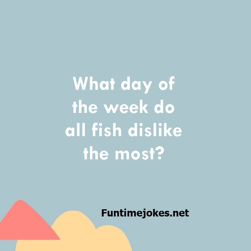 π Pop Balloon Riddles (Tap to reveal answers)What day of the week do all fish dislike the most? is one of the best riddle of the day.We have best collections of riddles, You can see our best collection of Tricky Riddles with Answer