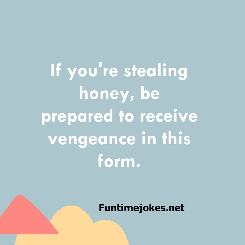 If you're stealing honey, be prepared to receive vengeance in this form. is one of the best riddle of the day.We have best collections of riddles, You can see our best collection of Tricky Riddles with Answer Funtimejokes be the be the world's most knowledge able riddle website on the internet for riddles, puzzles, rebus caps and quizzes. Our riddle library has interesting riddles and answers to riddles for adults and evoke deep thought and community discussion. Riddlers will benefit from the creativity of our members who participate in growth of our online riddles and puzzles resource. We encourage you to become a member of Riddles and receive daily/weekly free riddles email.