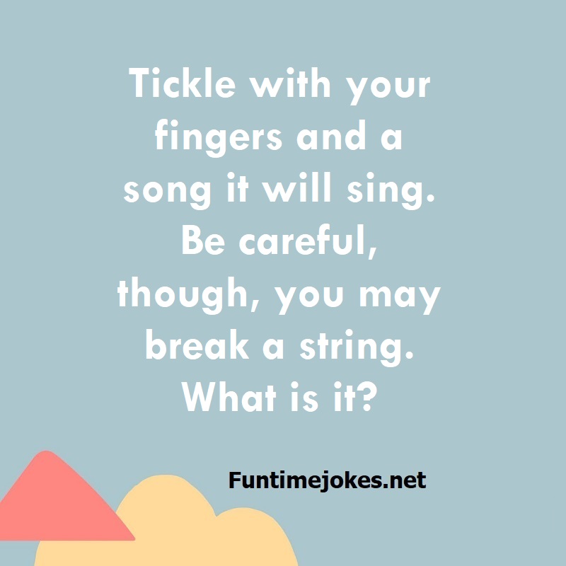 π Take the 15-Riddle Challenge (Win at 80%+)Tickle with your fingers and a song it will sing. Be careful, though, you may break a string. What is it?