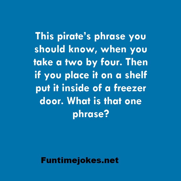 🏆 Take the 15-Riddle Challenge (Win at 80%+)This pirate’s phrase you should know, when you take a two by four. Then if you place it on a shelf put it inside of a freezer door. What is that one phrase?